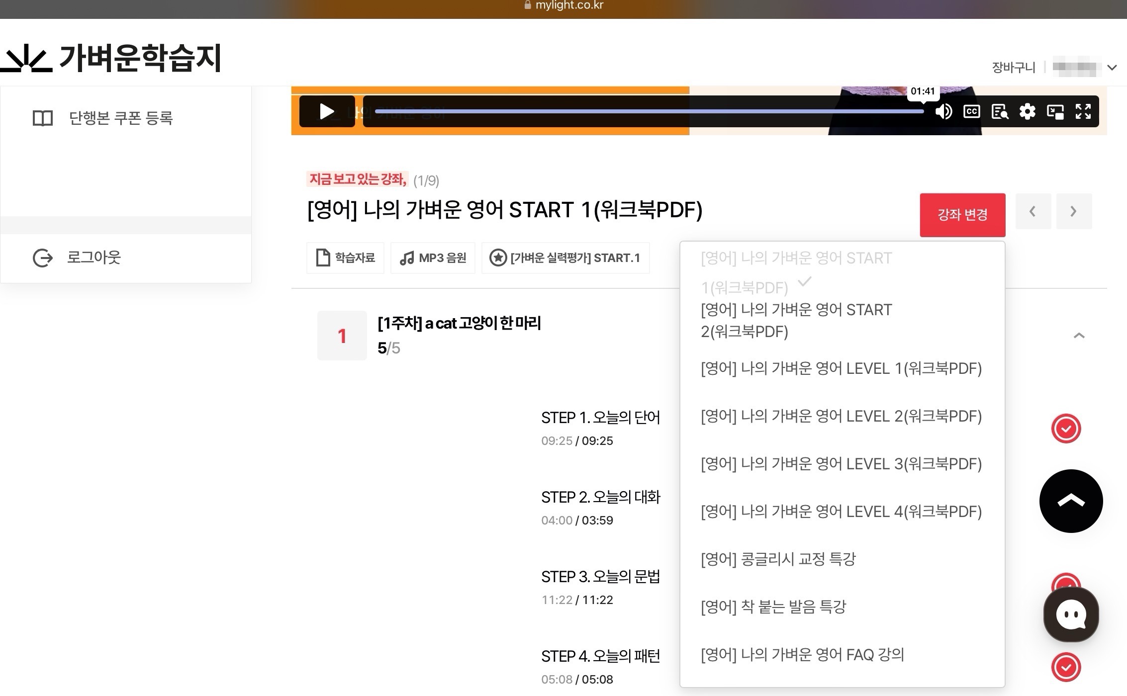 가벼운학습지 영어 강의 구성은 레벨 강의 외에도 위의 사진처럼 여러 특강들이 포함되어 있다.