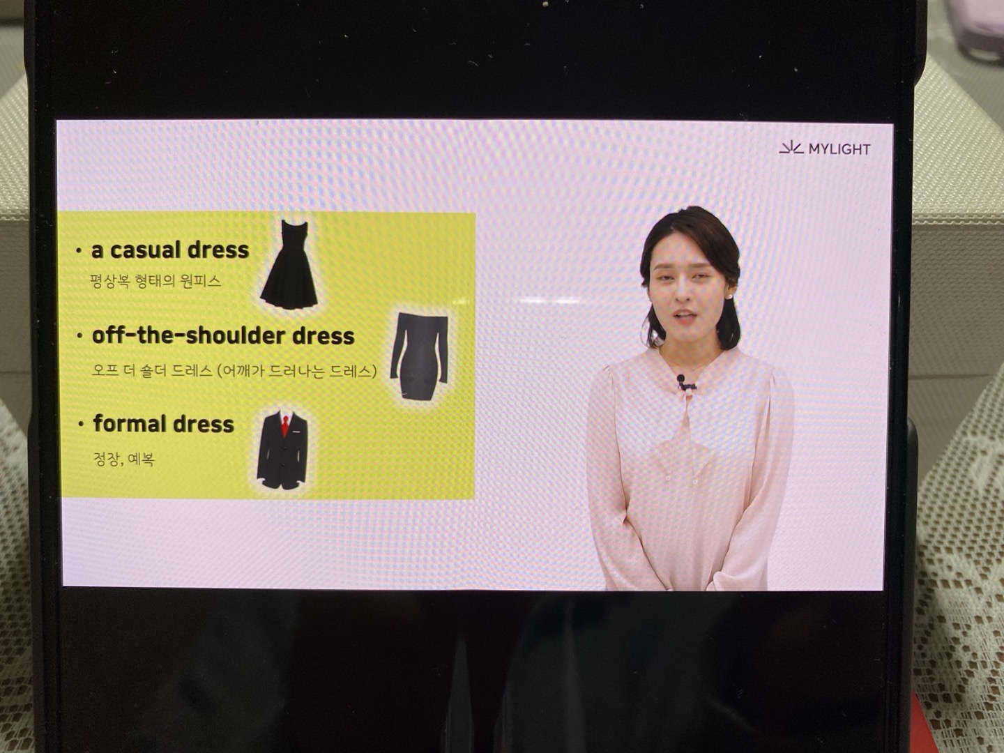 heavy 무거운 / pretty 예쁜 / smart 똑똑한 / laptop 노트북 / place 장소